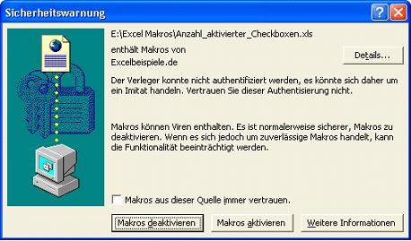 Abfrage zum de- bzw. aktivieren der Makros erscheint, der wird