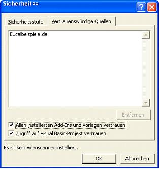 Öffnen einer Exceldatei, die auch VBA Code enthält, immer die