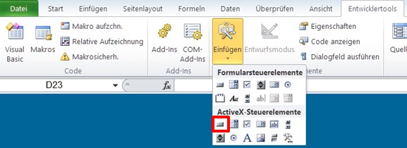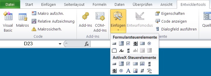 erscheint ein Menü, in dem Sie "Formularsteuerelemente"